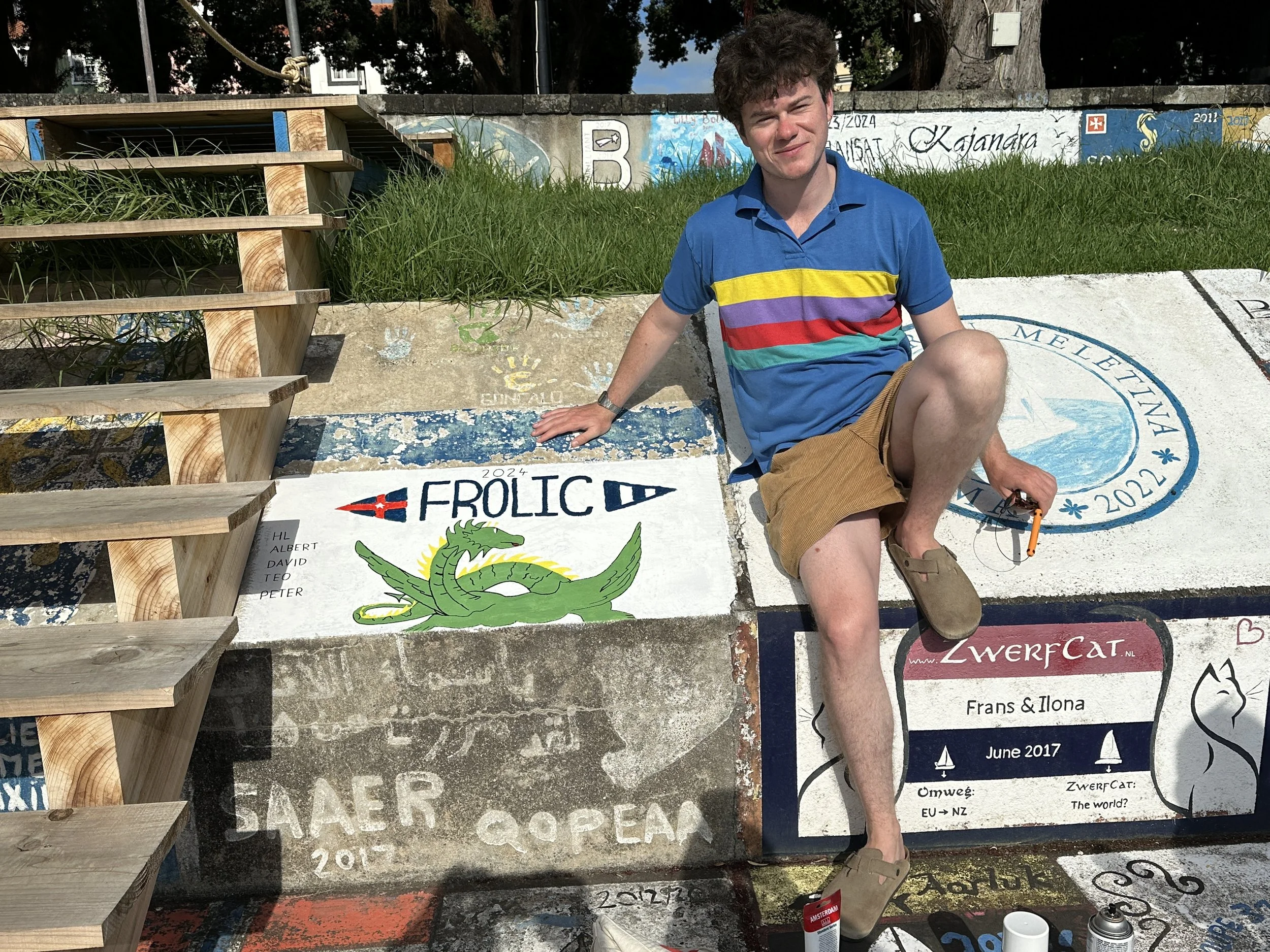As is customary for sailboats that have voyaged to Horta, we left a painting on the wall surrounding the harbor. There are many amazing paintings there and it is well worth an hour or more to walk around and see them.