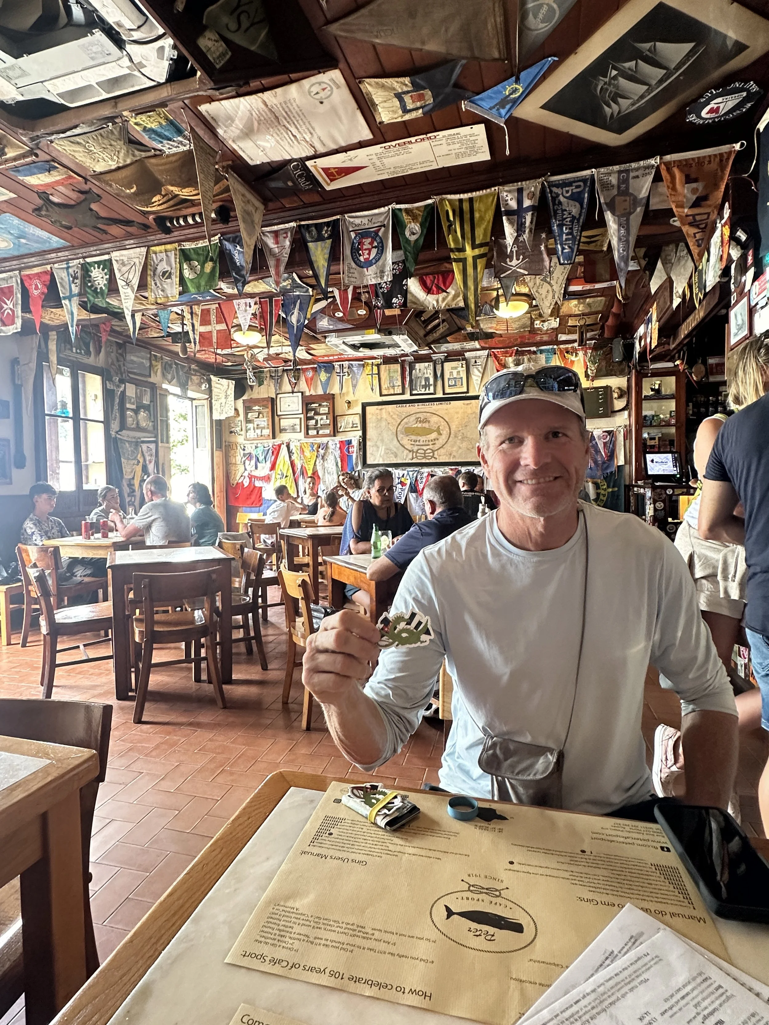We ate a lot of local food. For dinner make sure to get reservations as a lot of places book out. A lovely lunch spot in Porto Pim is Taberna de Pim, which has outdoor tables that overlook the bay (and killer desserts). Of course as sailors we also ate at the storied Cafe Peter.
